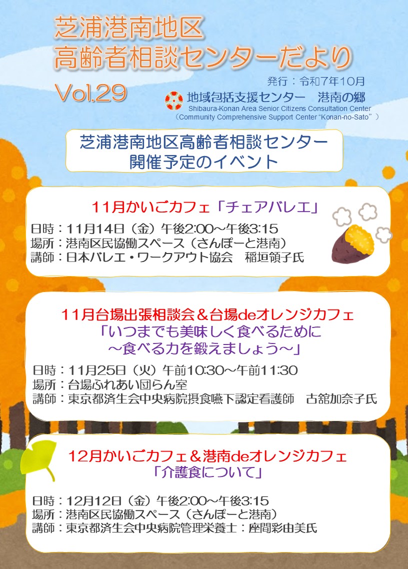 次回の台場訪問相談会&台場deオレンジカフェは令和7年11月25日(火)10:30~「いつまでも美味しく食べるために~食べる力を鍛えましょう~」を開催します。