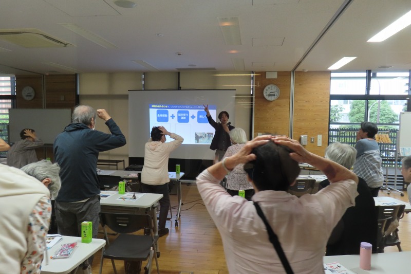 講義のあとは、実際に体を動かしながら脳を刺激する“二重課題トレーニング”を体験しました!