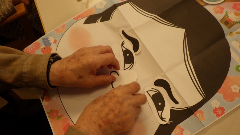 1月は新年の行事として、鏡開き・福笑い・コマ回し・百人一首・書き初めを行いました。季節を感じるひとときとなりました。