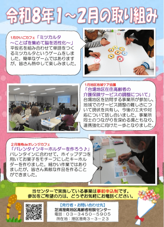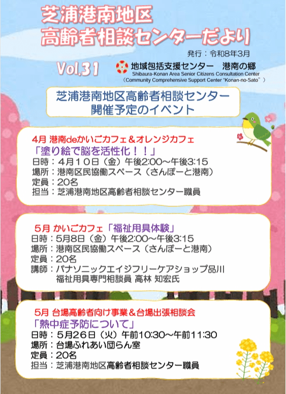 活動内容を区民の皆さまに広く知っていただくため、芝浦港南地区高齢者相談センターだよりを年3回発行しています。